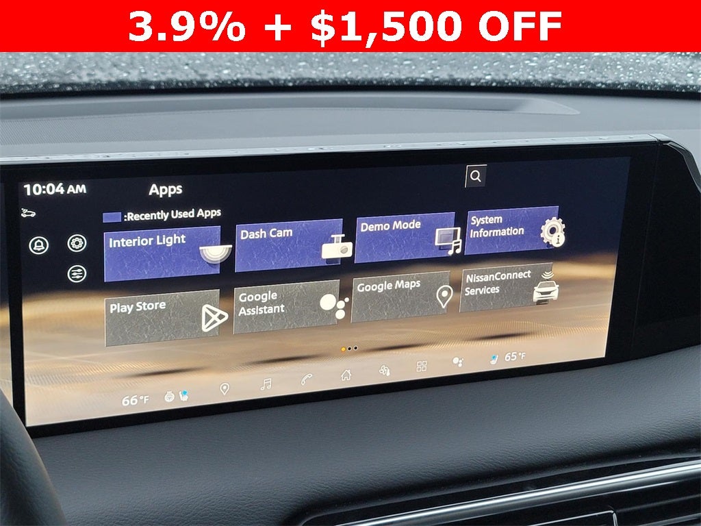 - Radio: NissanConnect w/SiriusXM 360L -inc: 12 speaker Klipsch audio system, 14.3" center touch-screen display, wireless Apple CarPlay and Android Auto, Google Assistant Maps and Playstore data, Alexa built-in, Nissan door to door connected navigation w/traffic information, Bluetooth® hands-free phone system, Bluetooth® streaming audio and messaging, voice recognition for audio features, hands-free text messaging assistant, Siri Eyes Free, USB port for compatible devices, advanced audio features, in-car 4G Wi-Fi hotspot and hybrid radio