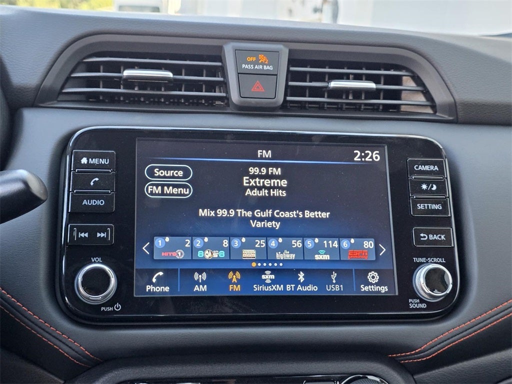 - Radio: AM/FM Audio System -inc: RDS, MP3, aux-in, 8" color touchscreen display (A-IVI PH2 DA), SiriusXM satellite radio, NissanConnect Services powered by SiriusXM featuring Apple CarPlay and Android Auto, Bluetooth® hands-free phone system, streaming audio via Bluetooth®, interface for iPod and other compatible devices, hands-free text messaging assistant, Siri Eyes Free/Google Assistant voice recognition, 6 speakers, 3 USB ports (2-charge only)