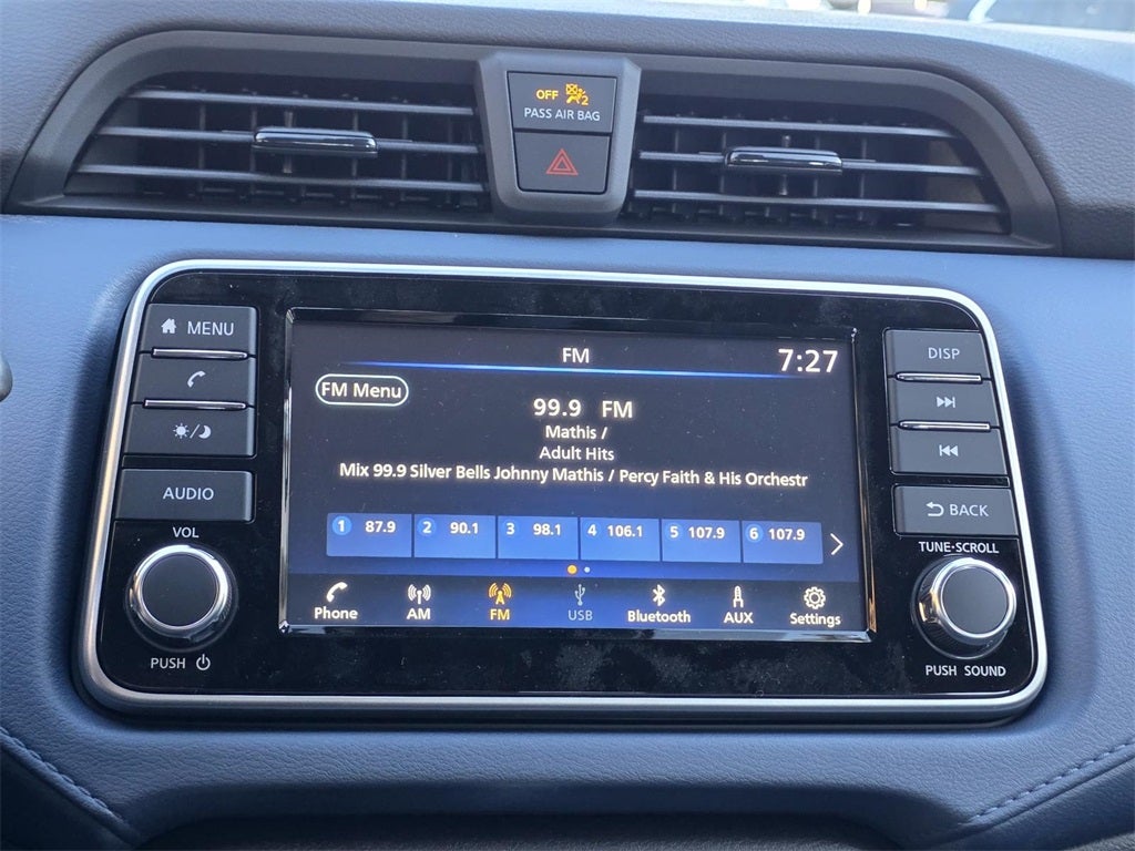 - Radio: AM/FM Audio System -inc: RDS, MP3, aux-in, 7" Advanced Drive-Assist Display, NissanConnect featuring Apple CarPlay and Android Auto, Bluetooth® hands-free phone system, streaming audio via Bluetooth®, interface for iPod and other compatible devices, hands-free text messaging assistant, Siri Eyes Free/Google Assistant voice recognition, 4 speakers and 3 USB ports (2-charge only)