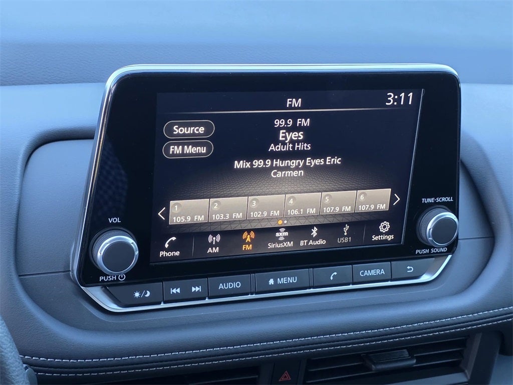 - Radio: AM/FM NissanConnect -inc: 4 speakers, SiriusXM radio, Apple CarPlay, Android Auto, 8" color touch screen display, Bluetooth® and 2 front USB type-C