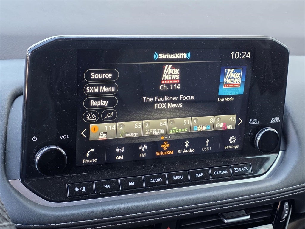 - Radio: AM/FM -inc: 6 speakers, 8" color display w/multi-touch control, NissanConnect featuring Apple CarPlay and Android Auto, SiriusXM Satellite Radio, 2 illuminated USB connection ports (1 type-A, 1 type-C), Bluetooth® hands-free phone system, streaming audio via Bluetooth® and hands-free text messaging assistant