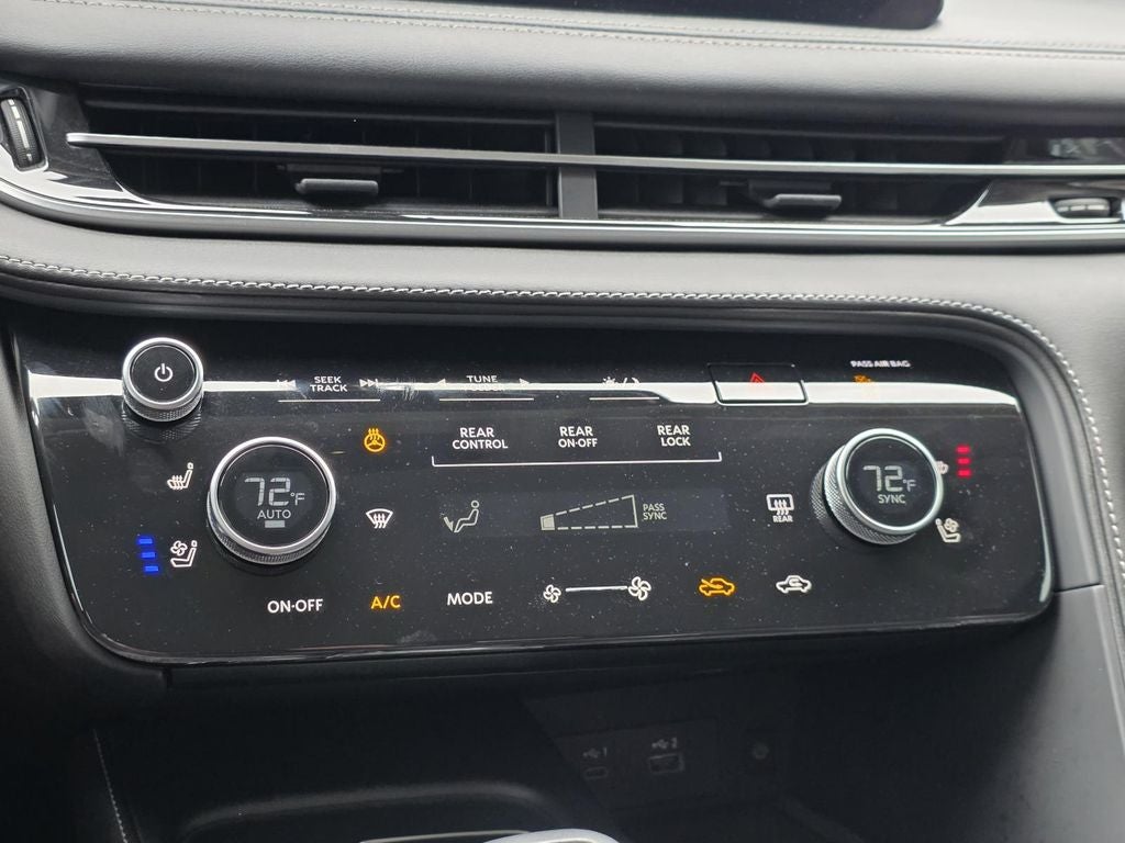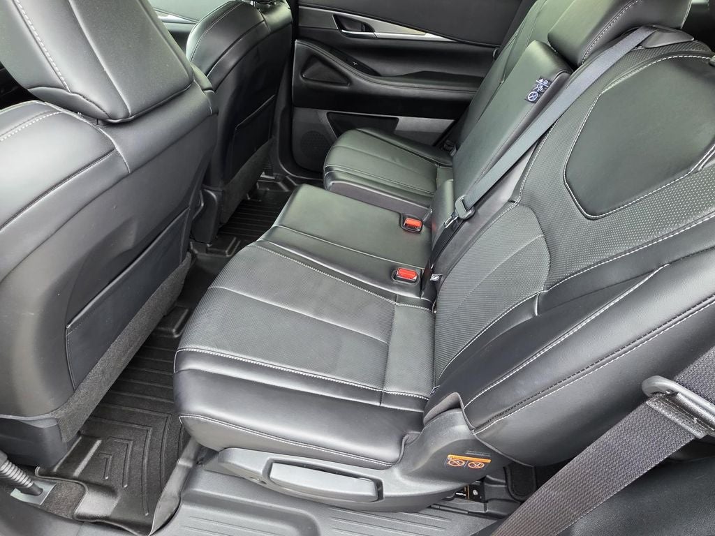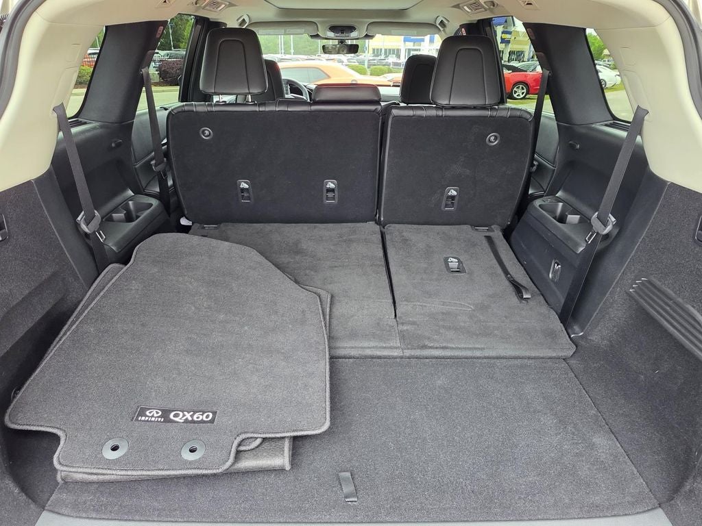 Elevate your commute or weekend getaway with the QX60 LUXE's impressive array of amenities. Indulge in the comfort of heated and ventilated front seats, a heated steering wheel, and a panoramic moonroof that floods the cabin with natural light. The versatile seating configuration, including a reclining third-row bench, ensures ample space for passengers and cargo.